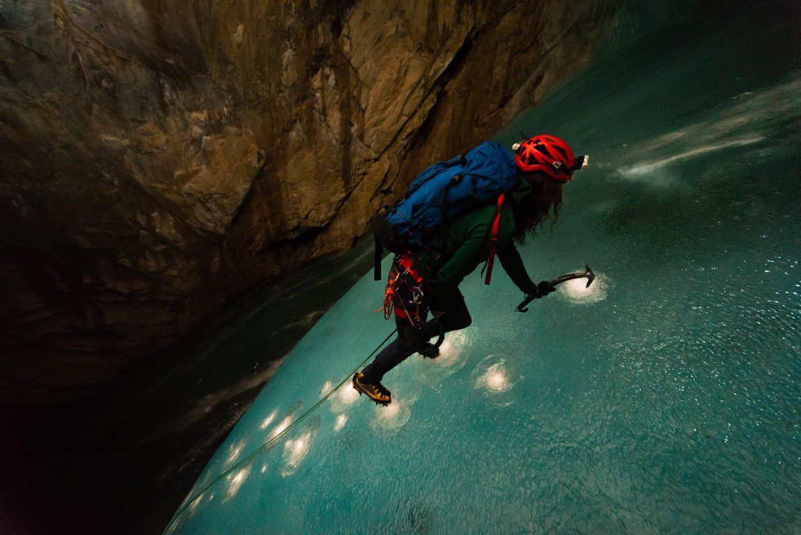The cave’s frozen waterfall is a 22-meter ascent leading to unexplored chambers and narrow passages that may loop back to the cave’s entrance.