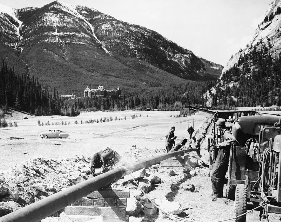 A new era began in 1914 with the discovery of vast oil and gas reserves in Turner Valley, southern Alberta. However, during World War I, Alberta lacked the infrastructure to effectively produce and transport natural gas. While oil was transported to local markets by horse-drawn wagons, natural gas was simply flared off. This flaring resulted in the loss of nearly 85% of the field’s oil and significantly shortened its lifespan.