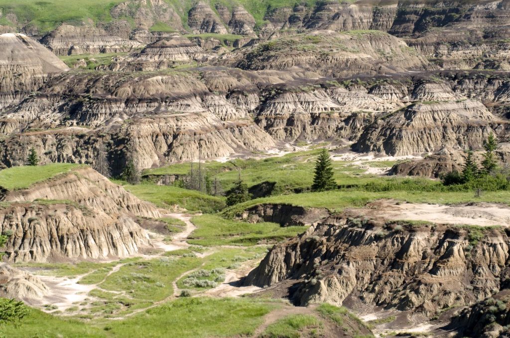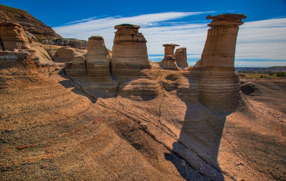 The trail is 2.9 kilometers long. This walk through a desert-like landscape with striped rocky formations and plateaus is well worth completing with a trip to the “Dinosaur” provincial park, one of the largest dinosaur fossil sites in the world. Interestingly, in 2020, a man named Nathan Grushkin discovered a 69-million-year-old dinosaur fossil in the canyon.