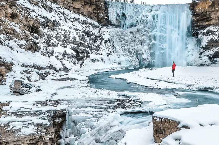 Водоспад розміщений на річці Бігхорн у західно-центральній Альберті. Має приголомшливий вигляд цілий рік, однак взимку замерзла на скелях вода створює справжню казку. 2,5-кілометрова стежка приведе вас до оглядового майданчика, звідки відкривається вражаючий краєвид на сам водоспад та долину річки Бігхорн. Mamma mia, це прекрасно!